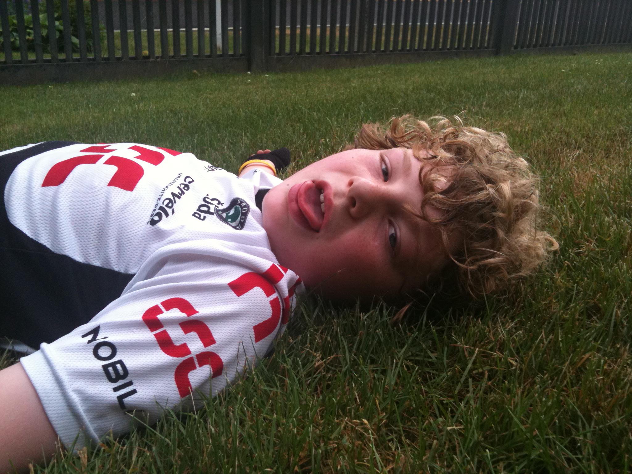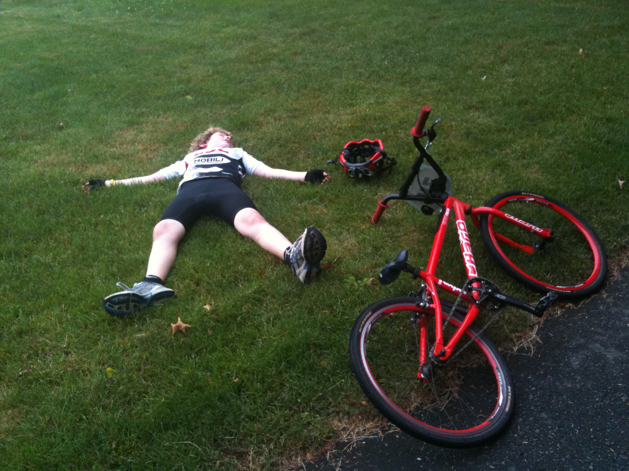 On the last lap, both of us were breathing hard and sweating heavy. Off the final turn, it’s uphill back to the house. He gapped me by about ten feet, pulled into the driveway and flopped onto the ground totally spent.